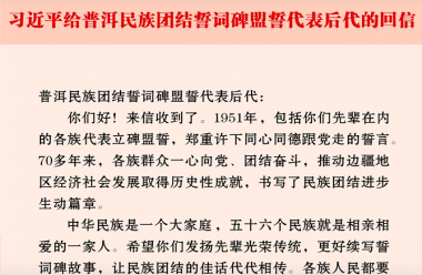 • 习近平回信勉励普洱民族团结誓词碑盟誓代表后代
