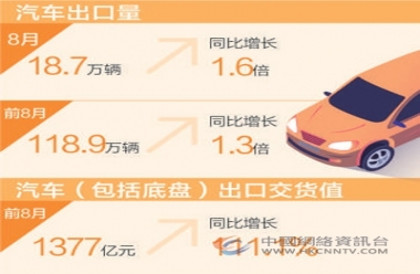• 我国产业体系完整 前八月汽车出口额翻倍