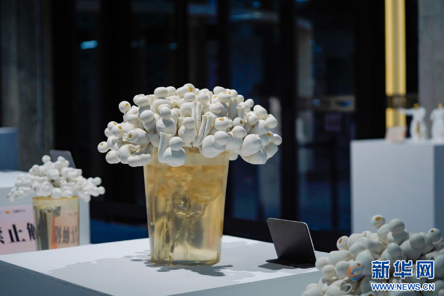 市民游客观赏陶瓷作品《纸》。新华网 蒋巧玲 摄